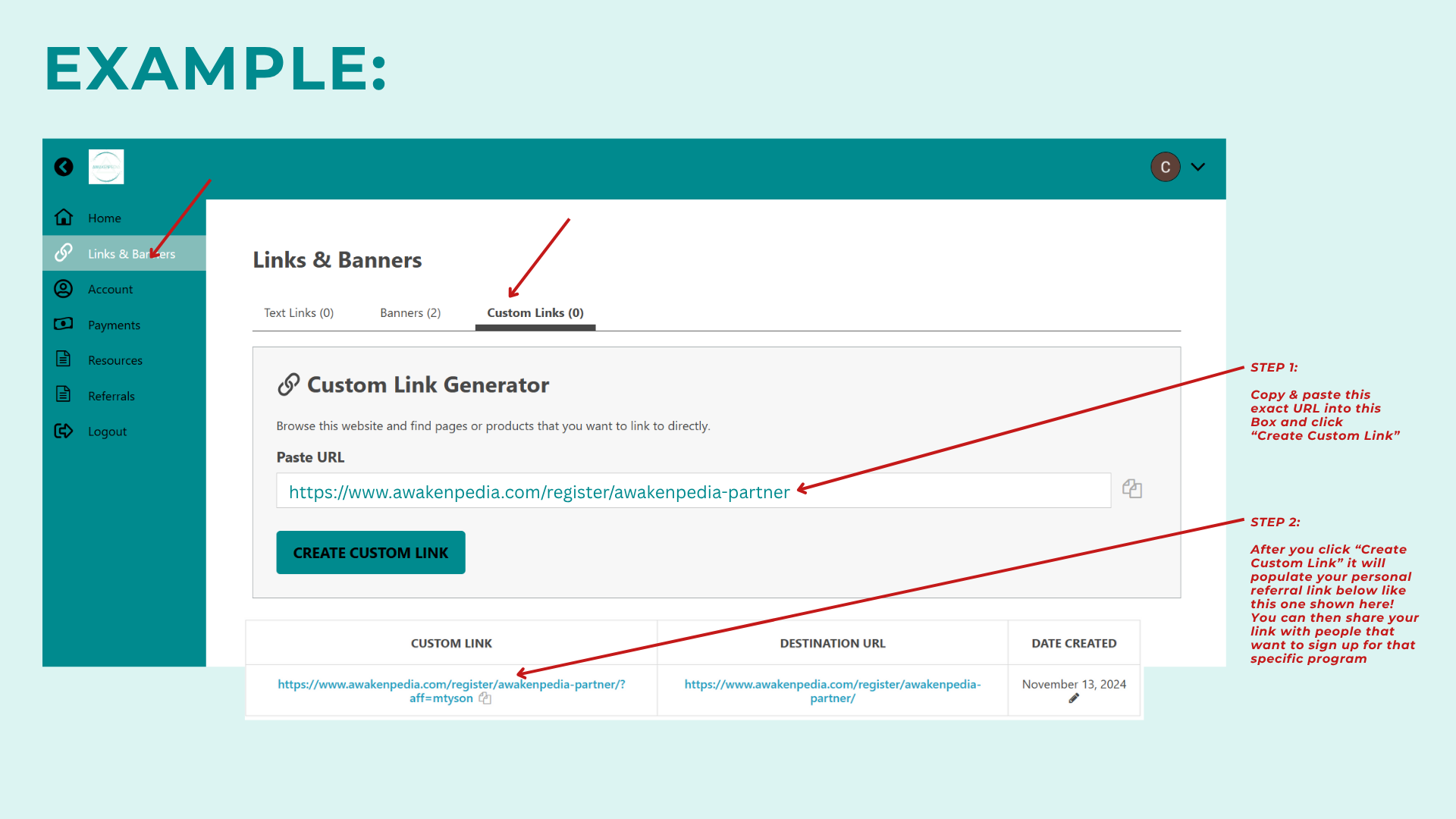 - This first link is pre-made for you and will be the first thing you see when you login.